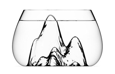 Fishbowl的魚缸在土耳其手工吹制而成,構(gòu)造新穎,設(shè)計師運用玻璃可以任意塑形的特性,將魚缸的本來水平的底部制成山峰的形狀,營造一種山脈凸起的視覺效果。在充滿水之后,光線的折射會帶給人一種水墨山水畫的意境。而若在其中放入金魚,又會有一種萬花叢中一點紅的感覺,同時一動一靜的結(jié)合亦將濃郁的中國風情調(diào)擴散而出。