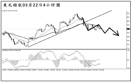 美元指數(shù)高位回落,已經(jīng)將此前的上升趨勢(shì)線順利跌破。此后美元指數(shù)未能加速下行,正在持續(xù)進(jìn)行盤整修復(fù)。4小時(shí)圖均線系統(tǒng)壓制排列,道氏低點(diǎn)也告破,雖然小時(shí)圖發(fā)生了MACD底背離信號(hào),預(yù)示空頭動(dòng)能有所減弱,但從整體來(lái)看,后市美元指數(shù)仍有進(jìn)一步下行的欲望。