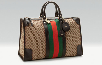 Frida Giannini 以贊揚(yáng)綠紅條紋拉開序幕。此次企劃所宣傳的鉆石紋 Duffle
