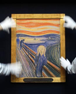 挪威畫家愛德華·蒙克的代表作《吶喊》近日亮相英國(guó)倫敦市中心的蘇富比拍賣行。它將于5月2日在紐約被拍賣。