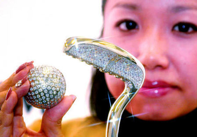 Platinum Guild 與Nagahori聯(lián)合推出鉆石款高爾夫球具。奢侈的高爾夫球具,輕輕一揮桿,閃爍著鉆石的光彩。 公司:Platinum Guild 與Nagahori 聯(lián)合出品 地點:東京 球桿鉆石重量:22.35克拉 球鉆石重量:25.13克拉