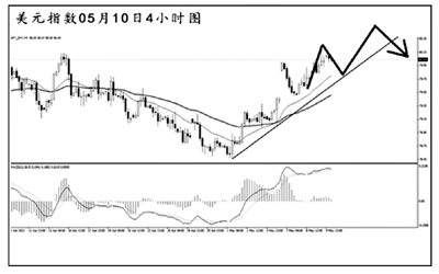 與非美貨幣疲弱的走勢相對應(yīng),美元短線的反彈勢頭保持良好,從圖形上看,目前價(jià)格正在挑戰(zhàn)80.15一線的阻力,從日線圖上看,美元指數(shù)仍處于震蕩的走勢之中。短線形成一條上升趨勢線,支撐在79.75一線,MACD發(fā)生了角度明顯的頂背離信號。預(yù)計(jì)美元指數(shù)面臨一定的下調(diào)壓力,但整體的上行趨勢不變。