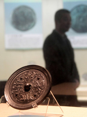 江蘇知名企業(yè)家陳鳳九珍藏歷代精品銅鏡入藏東吳博物館。包括齊家文化、春秋戰(zhàn)國時期、漢晉時期以及唐宋時期的近千件歷代銅鏡精品向社會公眾亮相。據(jù)介紹,企業(yè)家民間珍藏歷代銅鏡精品入藏國家級經(jīng)濟開發(fā)區(qū)所屬博物館,推動區(qū)域文化產(chǎn)業(yè)發(fā)展尚屬首次。記者 汪永基/攝 |