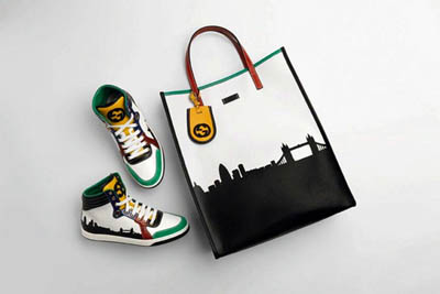 無論是鞋款還是包包均選用了上等皮革制造,設(shè)計師特別以倫敦的黎明天際線為圖案,加上對比度強(qiáng)烈的橘黃、嫩綠、棗紅和靛藍(lán)配件,五種取自奧運五環(huán)的色彩組成了最新的顏色混搭。同時推出的還有一款Gucci