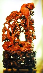 中國嘉德的翦淞閣文房寶玩專場拍賣成交熱烈,成為低迷市場行情中的一道亮色。圖為清代作品《喜鵲登梅竹山子》。