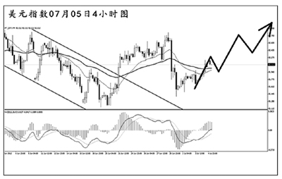 美元指數(shù)經(jīng)過(guò)了上周五的大幅下跌之后,本周持續(xù)處于盤整的狀態(tài),匯價(jià)小幅上揚(yáng),對(duì)此前的跌幅進(jìn)行修正。從4小時(shí)圖上看,均線系統(tǒng)被反復(fù)穿越,但主趨勢(shì)向下,后市需重點(diǎn)關(guān)注美元指數(shù)能否升破82.85的高點(diǎn)阻力。若升破,美元指數(shù)將延續(xù)日線圖的漲勢(shì),否則會(huì)以沖高回落走勢(shì)為主。