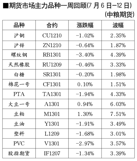 期貨市場主力品種一周回顧[7月6日-12日]