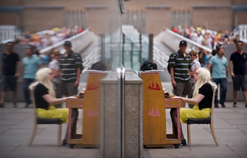 “這些街頭鋼琴就像巨大的空白帆布畫,等待著人們用自己的方式去描繪,”項(xiàng)目發(fā)起人魯克·杰拉姆告訴記者。他預(yù)計(jì),這次活動(dòng)期間倫敦會(huì)有20多萬(wàn)人次彈奏和欣賞街頭鋼琴。