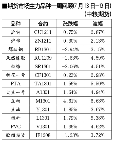 期貨市場(chǎng)主力品種一周回顧[7月13日-19日]
