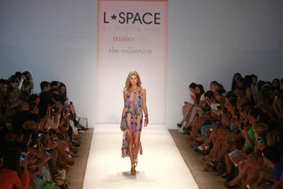 2013奔馳泳裝周日前在美國邁阿密舉行。圖為模特展示L. Space公司推出的泳裝系列。泳裝的款式,花色和佩飾都具有濃郁的懷舊和復(fù)古風(fēng)。新華社發(fā)