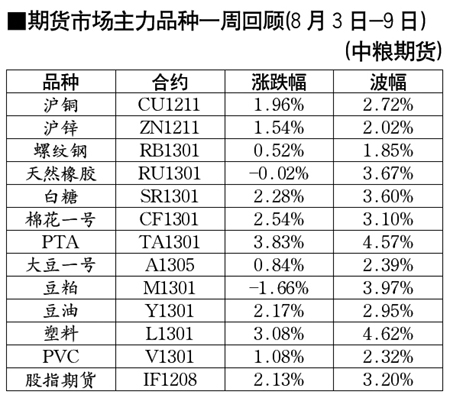 期貨市場主力品種一周回顧[8月3日-9日]