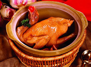 神仙雞的食材很有講究,農(nóng)家的放養(yǎng)雞和農(nóng)家本豬的豬前蹄加上花雕酒放在粗鹽上燉足四個(gè)半小時(shí),口感香酥滑爽,透味入骨。