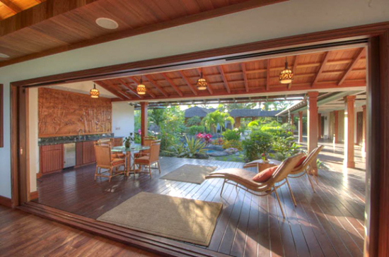 Bay)。它擁有五間帶有獨立浴室的臥室、一個健身室、一間放映室,奢華至極的廚房引向可供12人就餐的餐室。兩間臥室實際上設(shè)在迎賓館中。建筑周邊設(shè)施還包括兩個涼臺和一個中央庭院,庭院正對著一個由吧臺和休息區(qū)間隔而成的池畔涼亭,瀉湖風(fēng)格的游泳池中有瀑布和島嶼溫泉。根據(jù)該別墅網(wǎng)站,這座種植園莊園一直保留著其原有的名字,用“海島種植園風(fēng)格”裝修,用天然石材的馬賽克、彩色玻璃和非洲紅木雕刻裝飾。