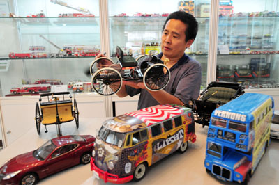 日前,位于天津河?xùn)|區(qū)中山門西里的天津市名車苑汽車文化博物館正式對(duì)外開(kāi)放。該館是天津市開(kāi)在家庭里的民辦市級(jí)博物館,館長(zhǎng)楊國(guó)發(fā)將自己家打造成汽車博物館,除生活必須空間外房間里擺滿汽車模型及汽車文化周邊產(chǎn)品。據(jù)了解,楊國(guó)發(fā)30年來(lái)收藏汽車模型達(dá)3000余件,明信片、牌照等汽車文化周邊產(chǎn)品1000余件。觀眾到此參觀可從汽車模型中感受到世界汽車發(fā)展史。新華社發(fā)