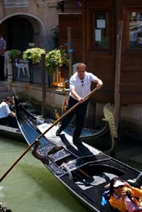 一般來到威尼斯的人都想坐一坐岡朵拉平底船,每條船收費62歐元/50分鐘(最多可乘6人),有的船可以延時,有的不行,要事先問好,超時部分每25分鐘加收30歐元,可以事先講價。
