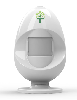 能量蛋為無線裝置,白色,外形呈圓形,有底座,像個(gè)小小的香薰燈,一只手可以輕松拿起。