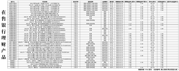 在售銀行理財(cái)產(chǎn)品[2012-10-12]