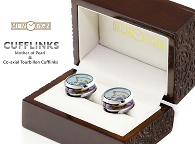 Memorigin(萬希泉)陀飛輪袖扣以中心陀飛輪作設(shè)計構(gòu)思,全透明玻璃讓陀飛輪立體感于多角度全面升華,底層襯以珍珠母面,絕對充滿魅力,吸引眾人眼球。