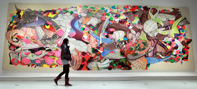 法國蓬皮杜中心藏有六千余位藝術(shù)家創(chuàng)作的近八萬件作品,居世界現(xiàn)當(dāng)代藝術(shù)品收藏首列。圖為一位參觀者在欣賞參展作品《波倫布》。新華社發(fā)