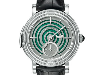 Labyrinth在翡翠綠的襯托下,三問報時裝置以多種獨特設計呈獻出超凡純粹的三問旋律。