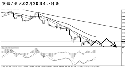 歐元兌美元將日線圖上升趨勢(shì)線跌破,下行勢(shì)頭保持完好,MACD顯示空頭動(dòng)能充盈。最近一周時(shí)間,歐元有3天收出實(shí)體大陰線,下跌力度強(qiáng)勁。4小時(shí)圖下降趨勢(shì)線的壓制位在1.3270一線,預(yù)計(jì)匯價(jià)將逐步向此位置發(fā)起反彈。能否突破此位置成為后市歐元繼續(xù)上行的關(guān)鍵。