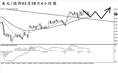 美元兌瑞郎突破大級(jí)別下降壓力線之后持續(xù)盤整,短線上沖力度有所減弱。由于日線圖道氏高點(diǎn)阻力0.9385并未被有效升破,中線上的下跌趨勢(shì)沒有結(jié)束。短線匯價(jià)有再度回抽趨勢(shì)線的風(fēng)險(xiǎn),關(guān)注下方支撐0.9250,只要匯價(jià)能夠站穩(wěn)在此位置上方,后市仍將以上漲為主。