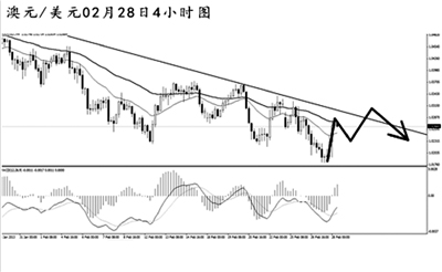 澳元兌美元跌勢(shì)延續(xù),在創(chuàng)出新低之后匯價(jià)強(qiáng)力反彈,但從4小時(shí)圖上看,下降趨勢(shì)線的壓制作用強(qiáng)勁,阻力在1.0300一線。最近澳元震蕩走勢(shì)仍然明顯,強(qiáng)動(dòng)能交替節(jié)奏頻繁,對(duì)于操作有很大的難度。上方道氏高點(diǎn)阻力在1.0340,預(yù)計(jì)澳元將逐步向此位置發(fā)起挑戰(zhàn),但直接上破的概率不大。