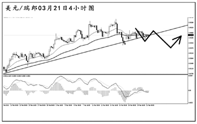 美元兌瑞郎小幅刺破了4小時(shí)圖的上升趨勢(shì)線,現(xiàn)正在考驗(yàn)此趨勢(shì)線的支撐強(qiáng)度。日線圖上看,由于匯價(jià)此前并沒(méi)有升破0.9510的阻力,上行空間未被打開(kāi),也在一定程度上制約了匯價(jià)的進(jìn)一步上攻。短線匯價(jià)面臨選擇,如果重新回到0.9510上方才有機(jī)會(huì)繼續(xù)做多,否則跌破趨勢(shì)線后則有很大的下調(diào)風(fēng)險(xiǎn)。