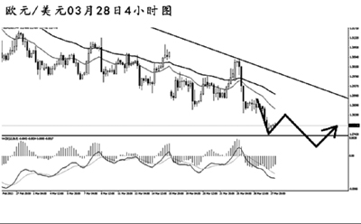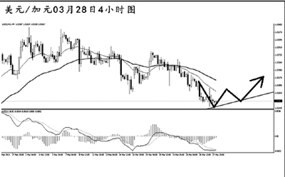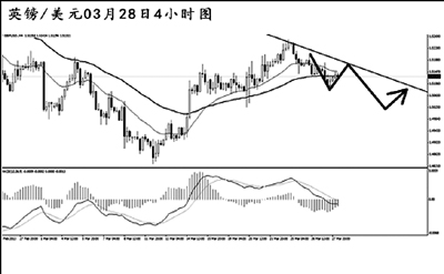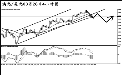 澳元兌美元在通道之內(nèi)完成了一波完好的5浪上漲,短線匯價下調(diào),已將通道下沿跌破。日線圖MACD仍處于多頭動能充盈的階段,只要澳元不跌破1.0340一線,則中線上仍有繼續(xù)上沖挑戰(zhàn)1.0600阻力的欲望。目前需關注小通道下沿的阻力作用,預計匯價將小幅向上回抽,此后仍有一波下調(diào)的風險。
