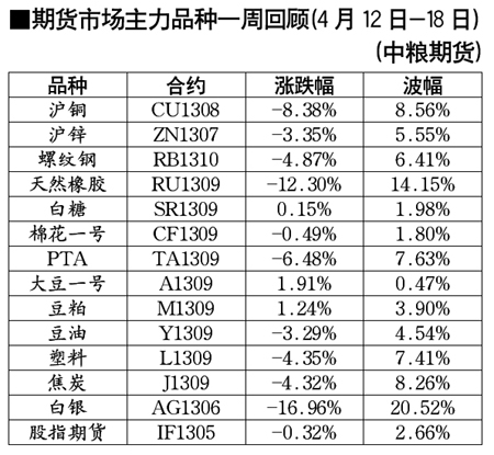 期貨市場(chǎng)主力品種一周回顧[4月12日-18日]