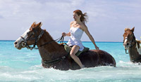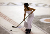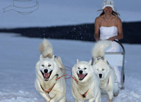 照片中,珍妮弗或是穿著婚紗體驗(yàn)懸崖跳傘,或是坐著狗拉雪橇,或是手拿一杯葡萄酒面對(duì)埃菲爾鐵塔,或是面對(duì)中國麗江的水車沉思,甚至腳穿球鞋、在NBA球場(chǎng)上定點(diǎn)投籃……