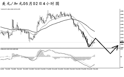美元兌加元最近一周都處于一個(gè)強(qiáng)勁下跌的勢(shì)頭之中,日線圖連續(xù)4天收出大陰,MACD進(jìn)入到空頭動(dòng)能充盈的階段。匯價(jià)在刺破1.0080之后,下方的強(qiáng)支撐在道氏低點(diǎn)0.9930。而上方最近的阻力在1.0120,依據(jù)現(xiàn)在短線的下跌力度判斷,美元兌加元仍將以走弱為主。