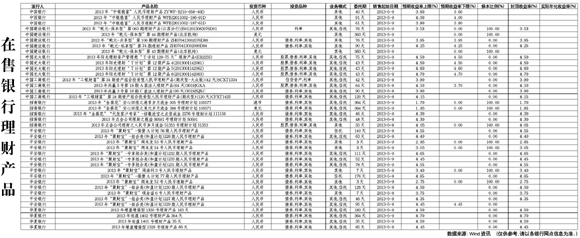 在售銀行理財(cái)產(chǎn)品[2013-05-10]