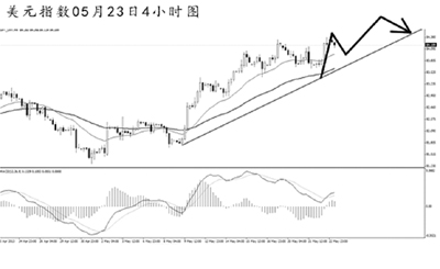 從圖上看,美元指數(shù)升破84.05的前方高點(diǎn)之后持續(xù)盤整,最終價(jià)格在伯南克講話的刺激下再度沖高,上方空間被進(jìn)一步打開。小時(shí)圖繼續(xù)產(chǎn)生新的MACD頂背離信號(hào),多頭動(dòng)能仍在減弱。4小時(shí)圖均線系統(tǒng)依托排列,目前需重點(diǎn)關(guān)注美元指數(shù)能否順利站穩(wěn)在84一線上方,以判斷后市非美貨幣的下跌勢(shì)頭。