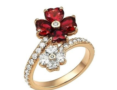 You高級珠寶系列,精致細(xì)膩,提供白金、鉆石和紫水晶及玫瑰金、鉆石和紅寶石兩個版本。該系列包括吊墜、戒指,不同款式會有一朵或兩朵的花朵。每件作品均由蕭邦高級珠寶工坊打造,珠寶大師將逐一將寶石鑲嵌在這些珠寶幸運符的中央……