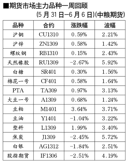 期貨市場主力品種一周回顧[5月31日-6月6日]