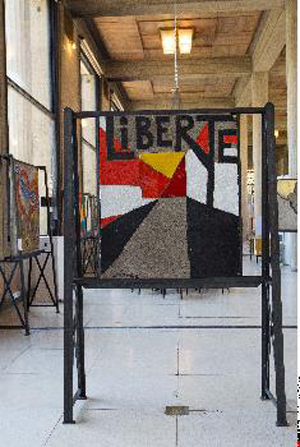 6月6日,柏林墻藝術(shù)品在法國(guó)巴黎拍賣。圖為柏林墻藝術(shù)品拍賣前的展示。