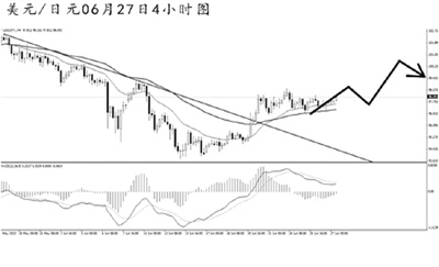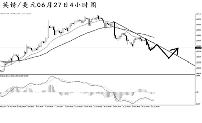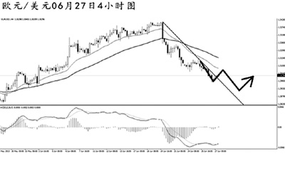 歐元兌美元最近6個交易日5天收陰線,體現(xiàn)出強勁的下行勢頭。4小時圖均線系統(tǒng)已經(jīng)形成空頭排列,且同時受到下降趨勢線的壓制作用。道氏高點阻力在1.3150,升破此位置之前,歐元的跌勢料將延續(xù)。短線可看出明顯的空頭動能減弱的信號,預(yù)計歐元將展開一波上調(diào),但下行的趨勢不易改變。