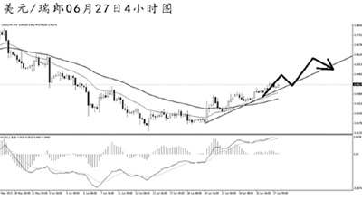 美元兌瑞郎一路上沖,雖然上漲斜率略顯平緩,但趨勢保持良好。4小時圖上看,目前匯價正在考驗道氏高點0.9415的阻力,升破方可打開進(jìn)一步的上行空間。小時圖均線系統(tǒng)依托排列,同時匯價受到上升趨勢線的支撐,后市仍有較為強勁的走高動力。在趨勢線被有效跌破之前,可繼續(xù)抱以看漲思路。