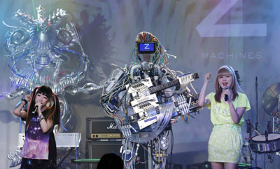 “Z-MACHINES”機(jī)器人搖滾樂隊(duì)近日在日本首都東京舉行了首演。其樂隊(duì)成員包括吉他機(jī)器人“馬赫”、鼓手機(jī)器人“阿舒拉”和鍵盤機(jī)器人“科斯莫”。