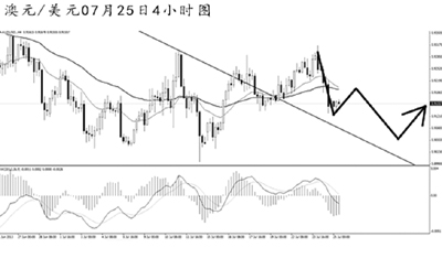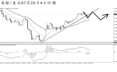 美元兌加元利用一周的時間構(gòu)筑起一個旗形中繼的調(diào)整形態(tài),此后匯價延續(xù)短線的跌勢。目前匯價運(yùn)行到了日線圖上升趨勢線的支撐位,能否有效跌破此線成為后市繼續(xù)下行的關(guān)鍵。小時圖MACD的底背離信號十分明顯,但均線系統(tǒng)保持壓制的狀態(tài),只有站穩(wěn)在1.0250下方才能考慮繼續(xù)入場做空。