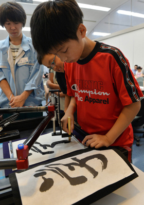 黑田宮崎現(xiàn)年10歲,就讀于橫濱市一所初中,數(shù)日前與同班同學(xué)來到慶應(yīng)大學(xué)學(xué)書法。令孩子們感到驚奇的是,教導(dǎo)書法的老師是機(jī)器人。