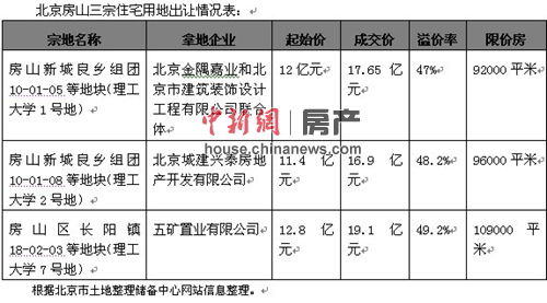 北京房山再現(xiàn)土地集中出讓 三宗地塊出讓金超53億元