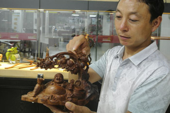 木雕種類紛繁復(fù)雜,從材質(zhì)上區(qū)分,有黃花梨、紫檀、樟木、榆木、銀杏和龍眼等,現(xiàn)在最被市場看好的是黃花梨和紫檀,尤其是海南黃花梨木雕備受藏家追捧。張影告訴記者,從上世紀(jì)80年代到現(xiàn)在,海黃一直就沒跌過,即便經(jīng)濟(jì)不景氣的時候價格依然十分堅挺,現(xiàn)在一個隨形而雕的黃花梨根雕好的能賣10多萬元。