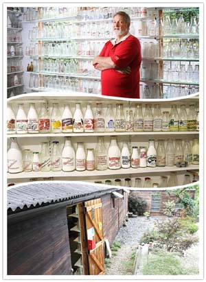 在惠勒家的花園中,有整整6個(gè)小棚屋用來放置這些收藏品,其中包括1.7萬個(gè)英國牛奶瓶和2500個(gè)外國奶瓶,來自包括澳大利亞、巴基斯坦、美國和加拿大等地,據(jù)說總價(jià)值高達(dá)10萬英鎊(約合95萬元人民幣)。