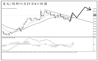 美元兌瑞郎在下降趨勢線的壓制作用下一路走低,短線的下跌力度有所加大,但跌幅很快便被強(qiáng)勁的上沖走勢所收復(fù)。4小時圖上看,道氏低點(diǎn)支撐0.9090被小幅跌破,但下跌勢頭未能延續(xù)。短線的上沖將均線系統(tǒng)和下降趨勢線的阻力雙雙升破,預(yù)計(jì)匯價將繼續(xù)上行挑戰(zhàn)0.9250的高點(diǎn)阻力。