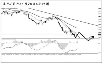 澳元兌美元的下行趨勢延續(xù)了一周的時間,短線匯價小幅反彈。日線圖上看,MACD仍處于空頭動能充盈的階段,下方支撐在0.8890。4小時圖均線系統(tǒng)保持壓制的狀態(tài),匯價已經(jīng)小幅升破了最近的一條下降趨勢線,預計后市將展開進一步的上調,但在升破0.9200之前,需繼續(xù)對澳元抱以看跌思路。