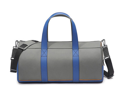 2014春夏款超輕配件、舒適鞋履和服裝的主要材質(zhì),富有強烈的雕塑效果和超滑的紋理質(zhì)地。該系列包括各種單色、雙色和三色的健身和運動包,顏色包括瀝青灰、沖刺藍和山綠色。簡約的設(shè)計和獨特的皮革滾邊將其從功能實用的經(jīng)典款型提升為可用于網(wǎng)球場或周末閑暇的高端包袋。