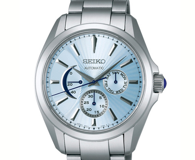 此系列表款搭載了6R21自動兼手動上鏈機械機芯,擁有與表盤相同的午夜藍配色透視背蓋,可清晰看見精密擺動的自動機芯。不銹鋼材質的表身,并在藍寶石水晶鏡面上施以Seiko獨家開發(fā)的Super
