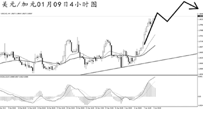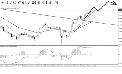 美元兌瑞郎的上沖勢頭迅猛,最近一周多的時間有3天收出實體大陽線。日線圖的下降壓力線已被升破,上方強阻力在0.9250。短線上漲斜率陡峭,匯價繼續(xù)走高的概率很大。小時圖MACD持續(xù)發(fā)生了角度明顯的頂背離信號,但在趨勢線跌破之前,不宜激進看空。預計匯價小幅調整之后將延續(xù)上漲勢頭。